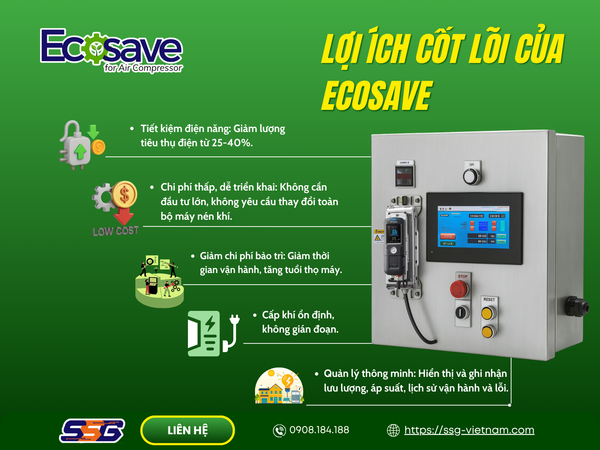 Ecosave có khả năng theo dõi và điều chỉnh theo biến động tải chỉ trong vài phút, đảm bảo hệ thống khí luôn vận hành sát với nhu cầu thực tế.